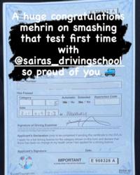Thank you Saira. This wouldn't have happened without your lessons. Highly recommended driving school in Manchester.